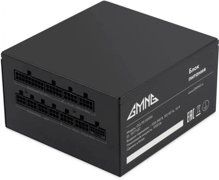Наименование модели: GMNG Блок питания GG-PS1000M 1000W, APFC, 80+ GOLD, 120mm fan, 9xSATA, full cable management (ATX 12V 3.0), RTL