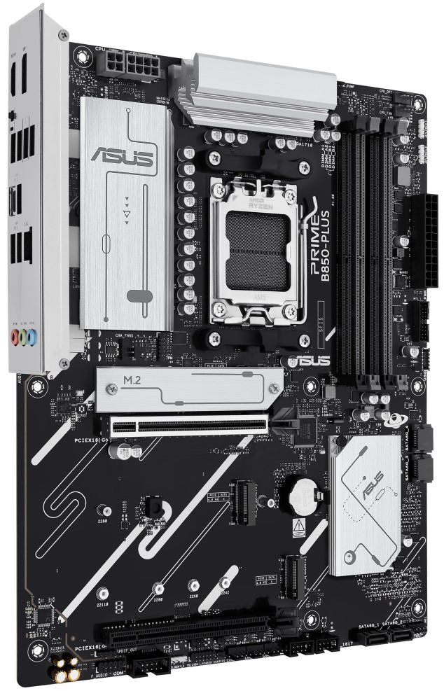 Наименование модели: ASUS Материнская плата ATX PRIME B850-PLUS 90MB1LC0-M0EAY0 (AM5, AMD B850, 4*DDR5, SATA, 3*M.2, PCIe, 2*USB 2.0, 5*USB 3.2, HDMI, DP)