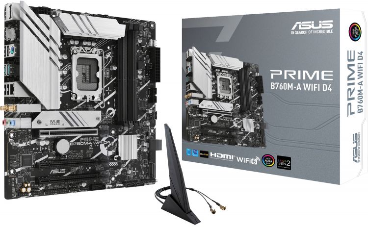 Наименование модели: ASUS Материнская плата mATX PRIME B760M-A WIFI D4 (LGA1700, B760, 4*DDR4(4800), 4*SATA RAID, M.2, 3*PCIe, 4*USB 2.0, 2*USB 3.2, BT/WiFi, 2*HDMI/DP, au