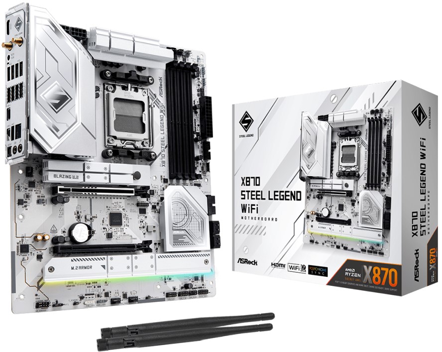 ASRock Материнская плата ATX X870 STEEL LEGEND WIFI (AM5, X870, 4*DDR5 (8000), 4*SATA, 3*M.2, 4*USB 2.0, 5*USB 3.2, 2*USB Type-C, 2*PCIe x16, HDMI)