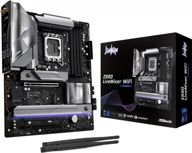 ASRock Материнская плата ATX Z890 LIVEMIXER WIFI (LGA1851, Z890, 4*DDR5 (9466), 3*PCIe, 4*M.2, 4*SATA, 10*USB 3.2, 2*USB Type-C, WiFi, BT, HDMI)
