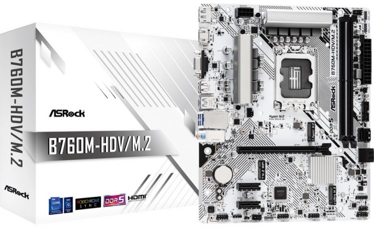 Материнская плата mATX ASRock B760M-HDV/M.2 (LGA1700, B760, 2*DDR4 (5333), 4*SATA 6G RAID, 2*M.2, 3*PCIE, Glan, D-Sub, HDMI, DP, USB Type-C, 3*USB 3.2