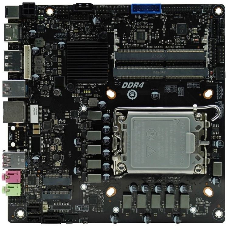 Afox Материнская плата mini-ITX AFMIQ670D4-MI4-V2 (LGA1700, Q670, 2*DDR4L (3800), mini-PCIe, M.2, 2*SATA, 4*USB 3.2, USB Type-C, HDMI, DP)