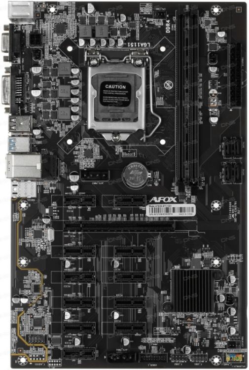 Материнская плата ATX Afox AFB250-BTC12EX RTL (LGA1151, B250, 2*DDR4 (3000), 4*SATA 6G, 12*PCIE, 2*USB 3.2 Gen1, 6*USB 2.0, 4*USB-A , 2*PS/2, RJ45, D-