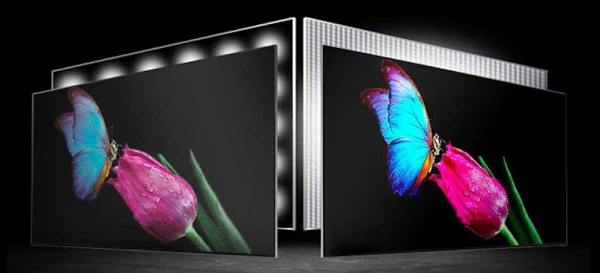 mini-LED подсветка (на фото справа) означает много маленьких светодиодов, выше контрастность, глубже черный цвет.
